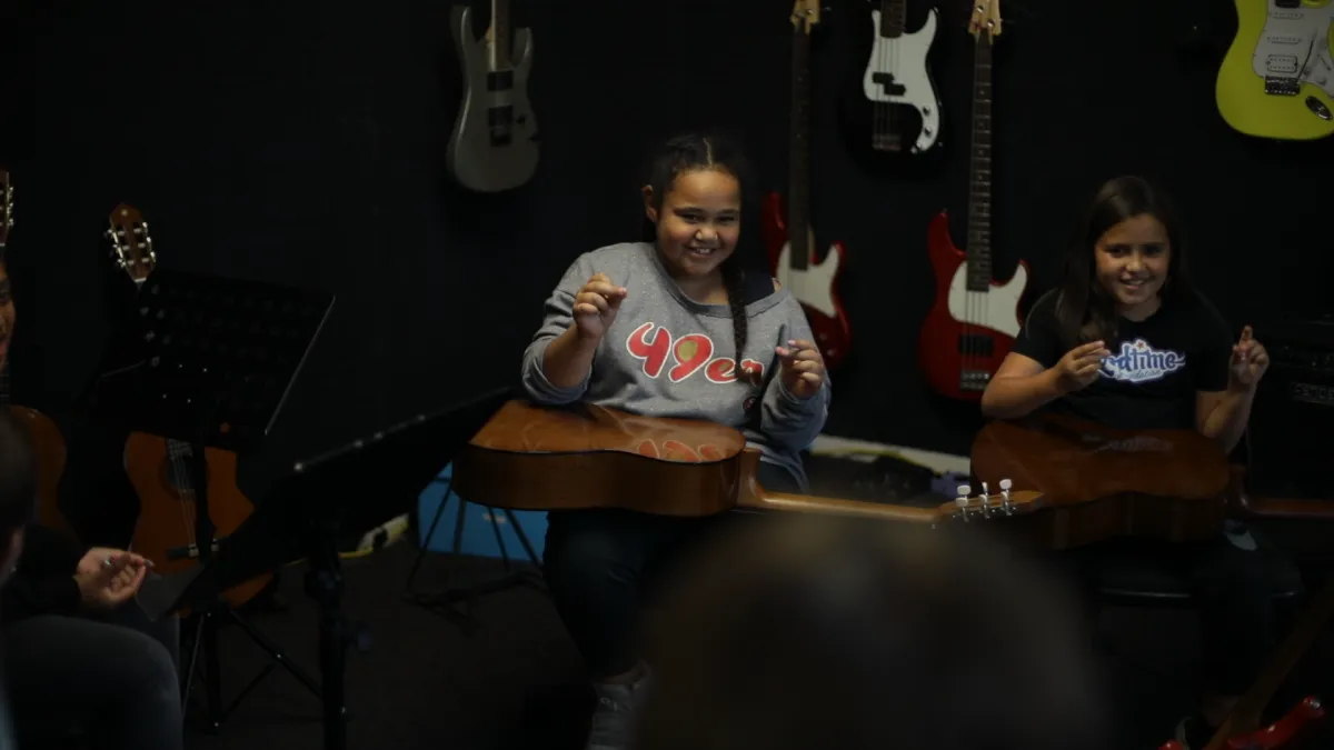 When your ears are well trained and you're learning songs you love, it's much easier to make the connection between sound and technique, which you'll observe quite naturally. You'll gain more comfort and confidence, and improve your mental and physical health, boosted by playing, singing, and all the musical exercises we practice in our programs.